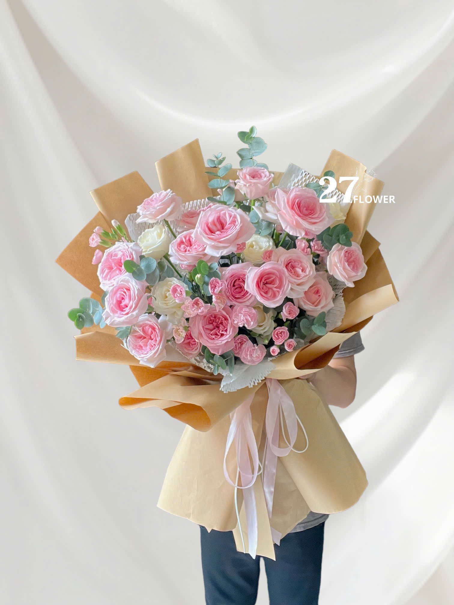 Sản phẩm được bó thủ công bằng tay,hoa theo mùa, độ nở,dáng hoa,hoa thay thế, thành phẩm sẽ đạt 70% so với mẫu.