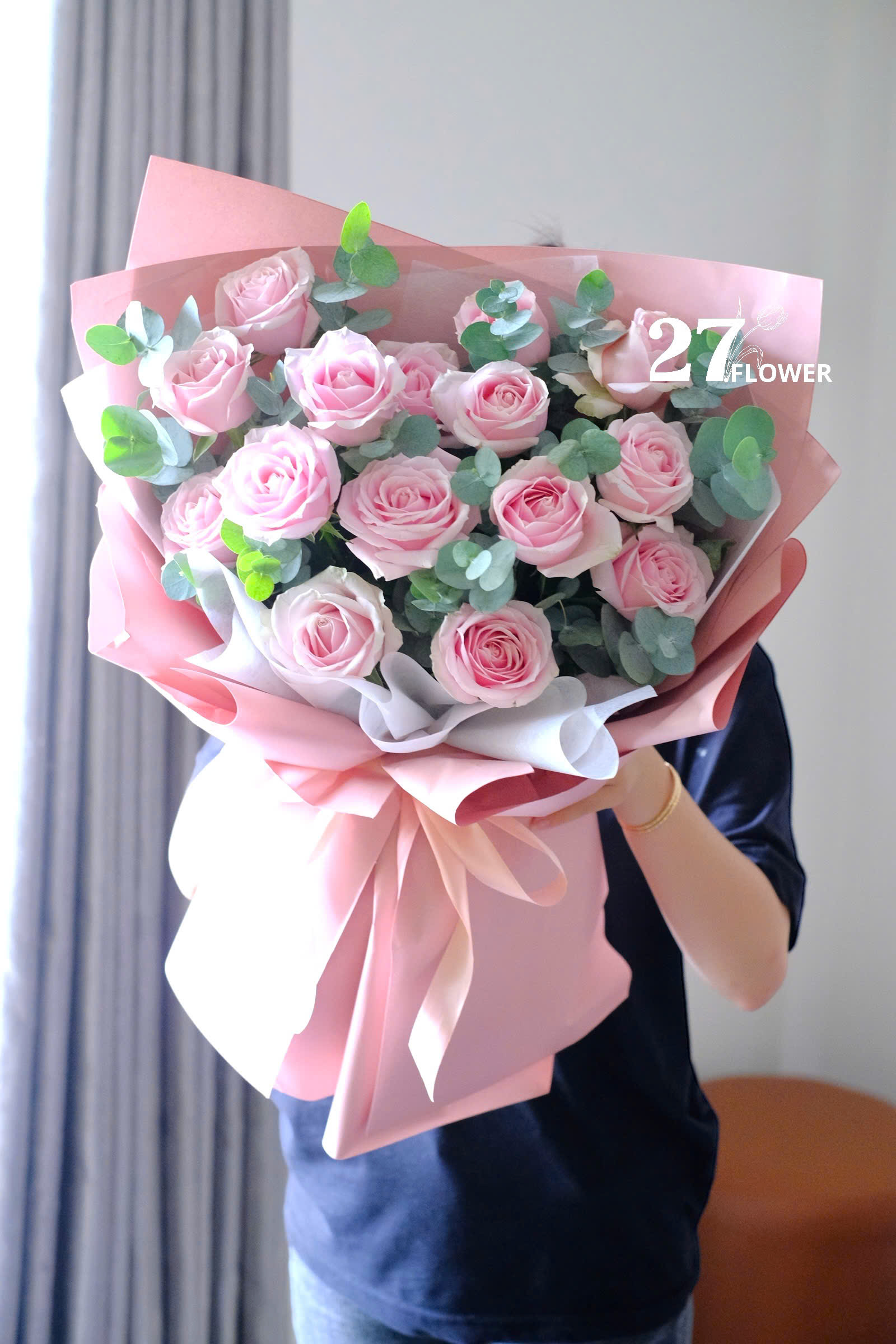 Sản phẩm được bó thủ công bằng tay,hoa theo mùa, độ nở,dáng hoa,hoa thay thế, thành phẩm sẽ đạt 70% so với mẫu.