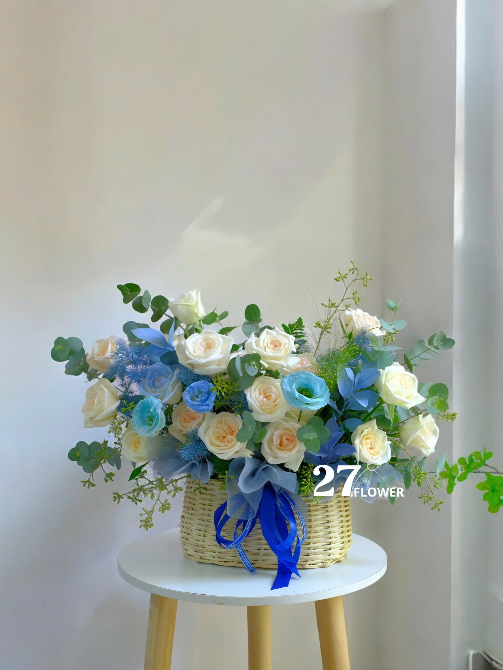 Sản phẩm được bó thủ công bằng tay,hoa theo mùa, độ nở,dáng hoa,hoa thay thế, thành phẩm sẽ đạt 70% so với mẫu.